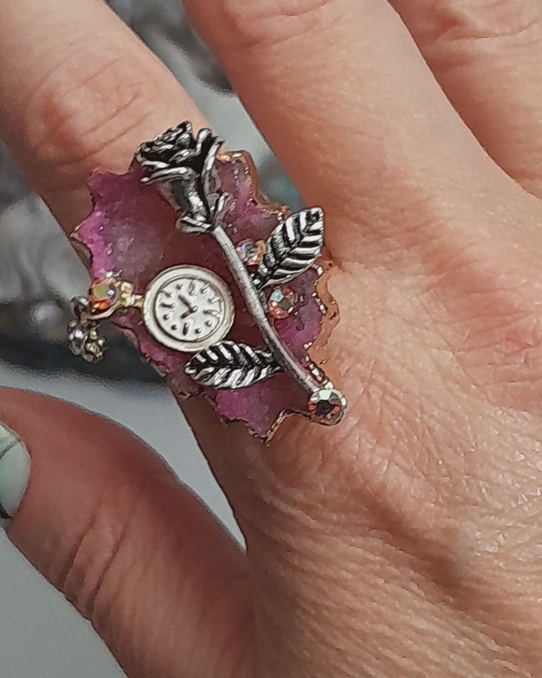 - Mesmerizing Geode: This ring features a pink geode that shimmers and shines and adds a captivating charm to any outfit