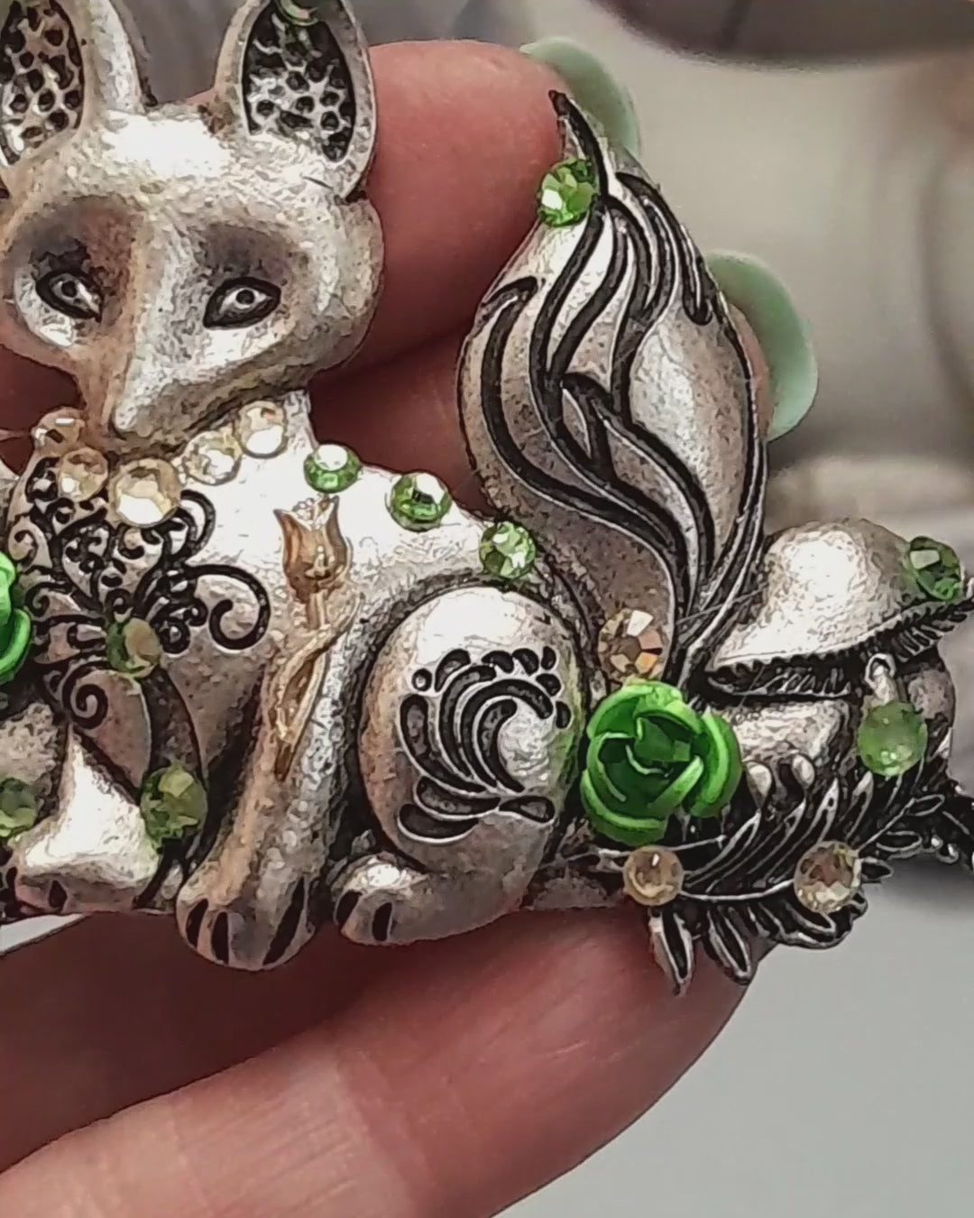 Enchanting silver fox design: I crafted this silver fox hairclip to embody nature's cunning and magic, bringing a touch of enchantment to your look.